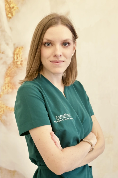 Jest absolwentką Uniwersytetu Medycznego w Białymstoku. Z pasją do kosmetologii i dbania o zdrowie oraz urodę swoich pacjentów, zdobywała doświadczenie przez 6 lat pracy w zawodzie. W tym czasie łączyła praktykę kosmetologiczną z rolą managera gabinetu, co pozwoliło jej poszerzyć wiedzę o zarządzaniu i organizacji pracy w branży beauty. Prywatnie mama Michalinki oraz opiekunka pieska Elsy, która codziennie motywuje ją do troski o innych. Połączenie pasji do kosmetologii z życiem rodzinnym i zawodowym sprawia, że w pracy zawsze stawia na indywidualne podejście do każdego pacjenta i najwyższy standard usług. W swojej praktyce łączy wiedzę teoretyczną z doświadczeniem, oferując profesjonalne doradztwo i zabiegi dostosowane do potrzeb skóry i oczekiwań pacjentów.